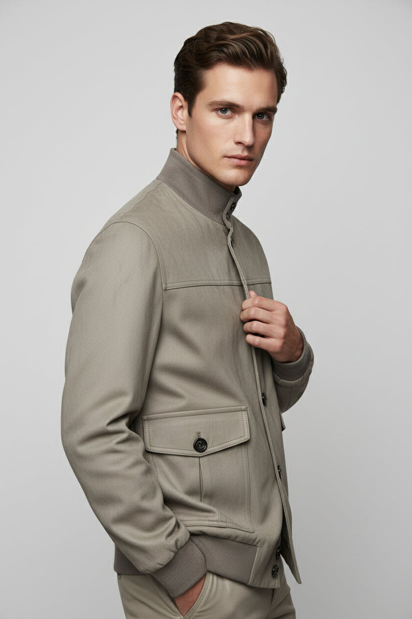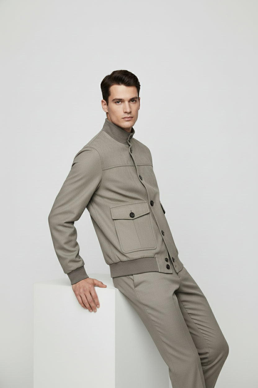 The Beige Suede Bomber Jacket is the definition of relaxed sophistication — a wardrobe staple designed for refined yet effortless style. Cut in a smooth, soft-touch suede finish, this jacket pairs timeless tailoring with contemporary comfort.