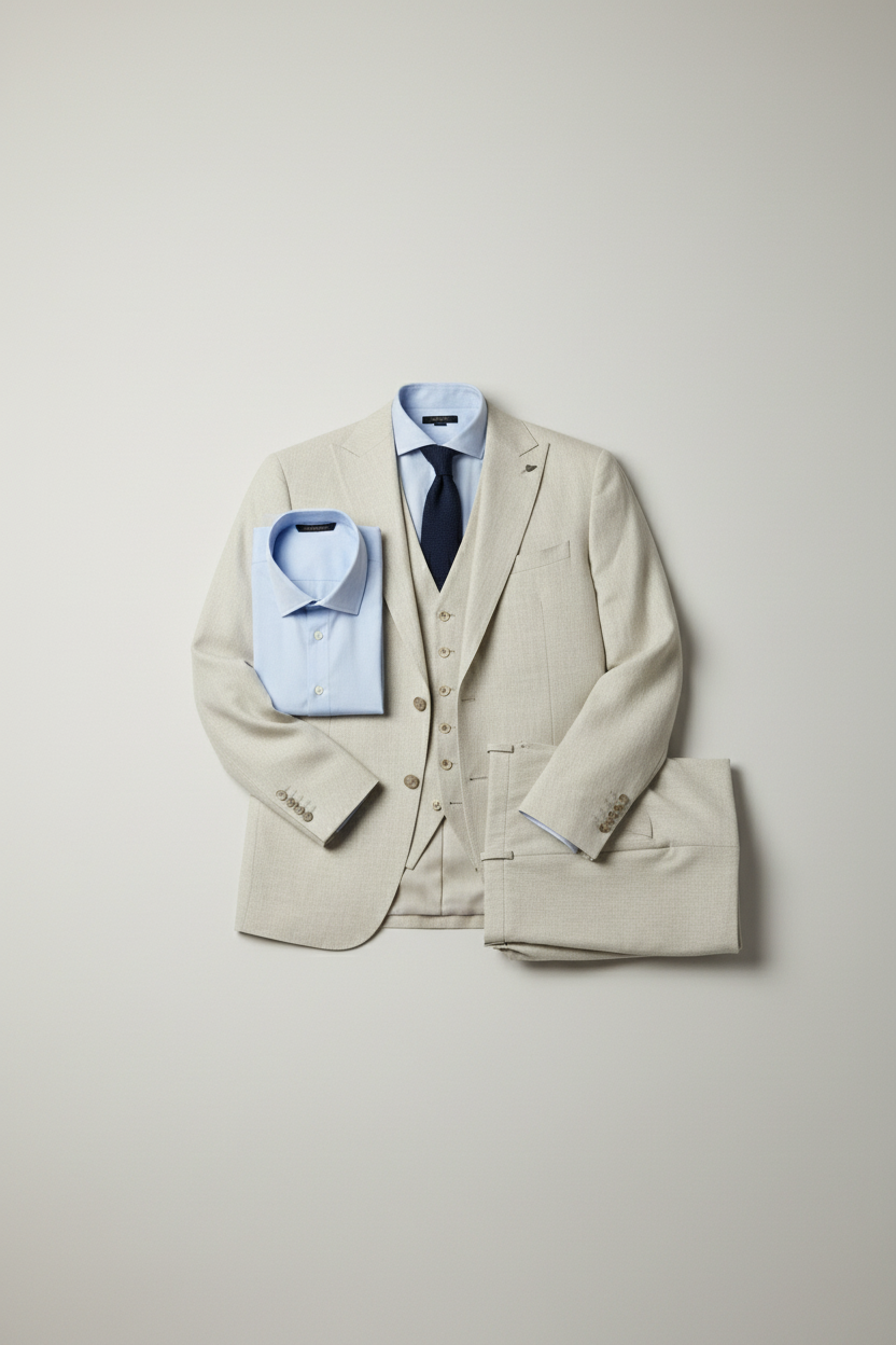 Pair this suit with a crisp white shirt and a navy tie for a striking contrast. Ideal for summer events, garden parties, or upscale gatherings, it leaves a lasting impression of confidence and style.