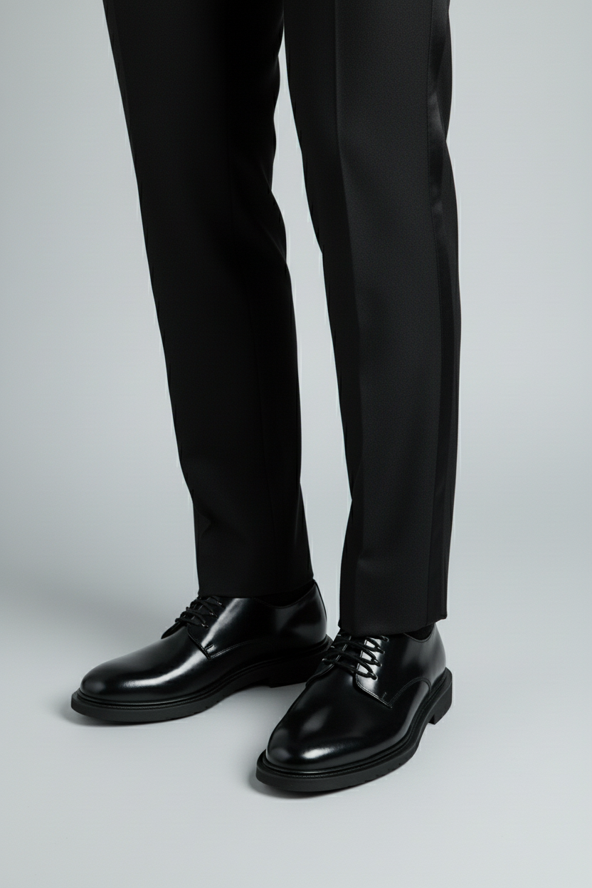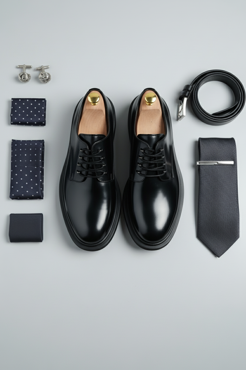The Black Derby Leather Shoes are a timeless staple in every gentleman’s wardrobe — combining classic craftsmanship with a sleek, modern edge. Made from premium polished leather, they feature an elegant open-lace design and a smooth finish that complements both formal and smart-casual ensembles.