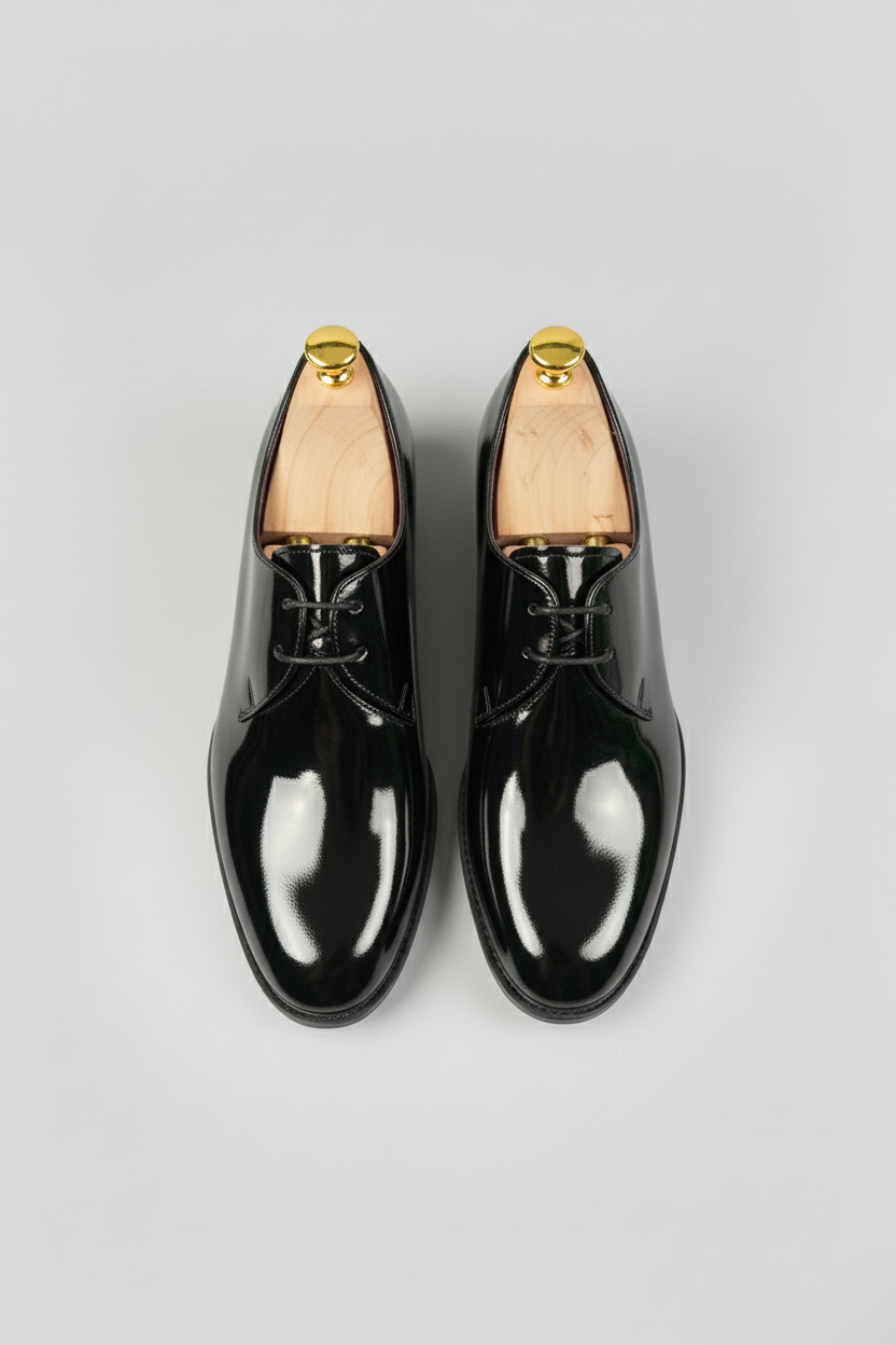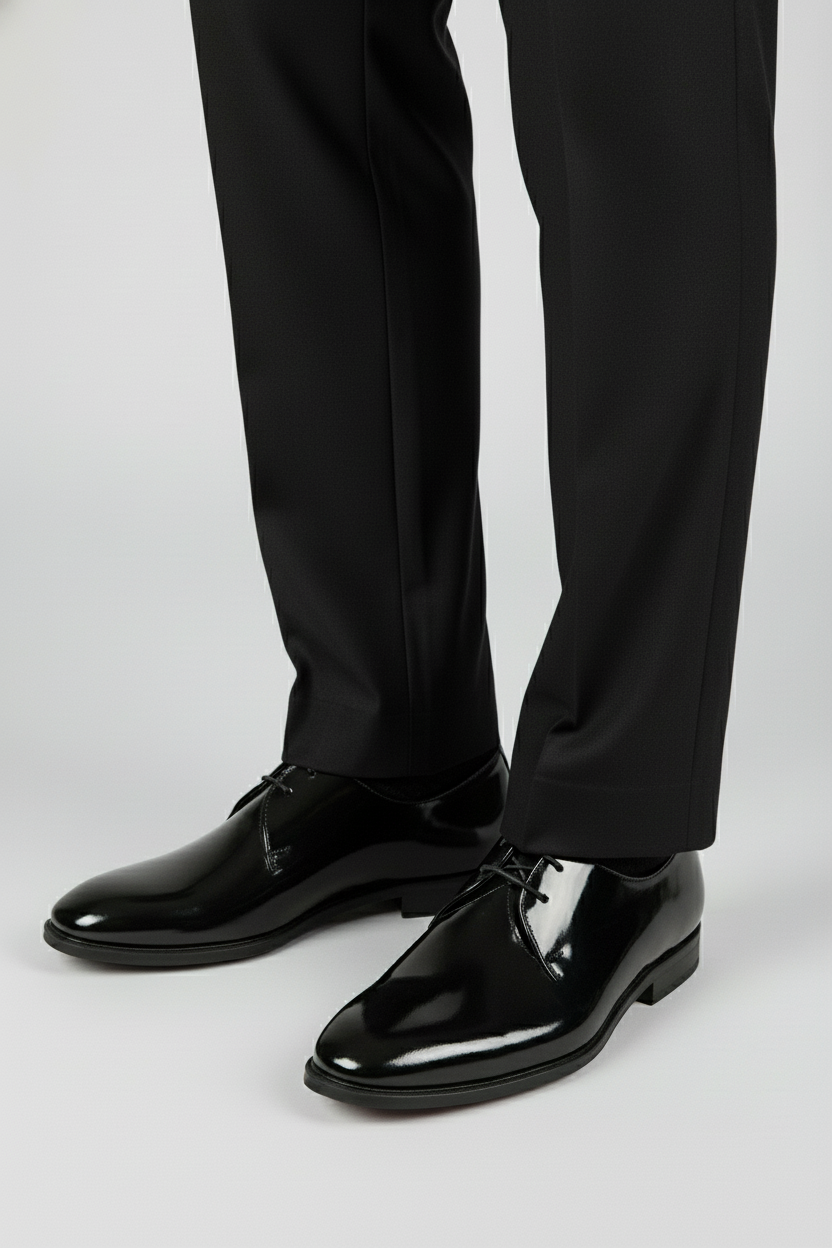 Command attention with the exquisite elegance of these Black Patent Leather Oxford Shoes. Perfectly crafted for formal occasions, they elevate any ensemble.
