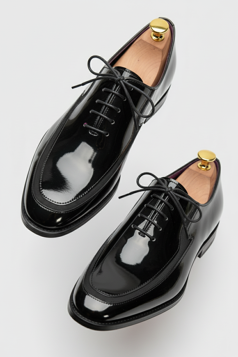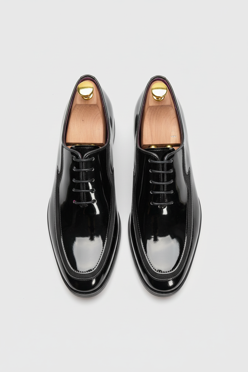 Command attention with these exquisite Black Patent Leather Oxford Shoes, perfect for formal occasions and elegant outings. Their high-shine finish and refined silhouette set them apart.