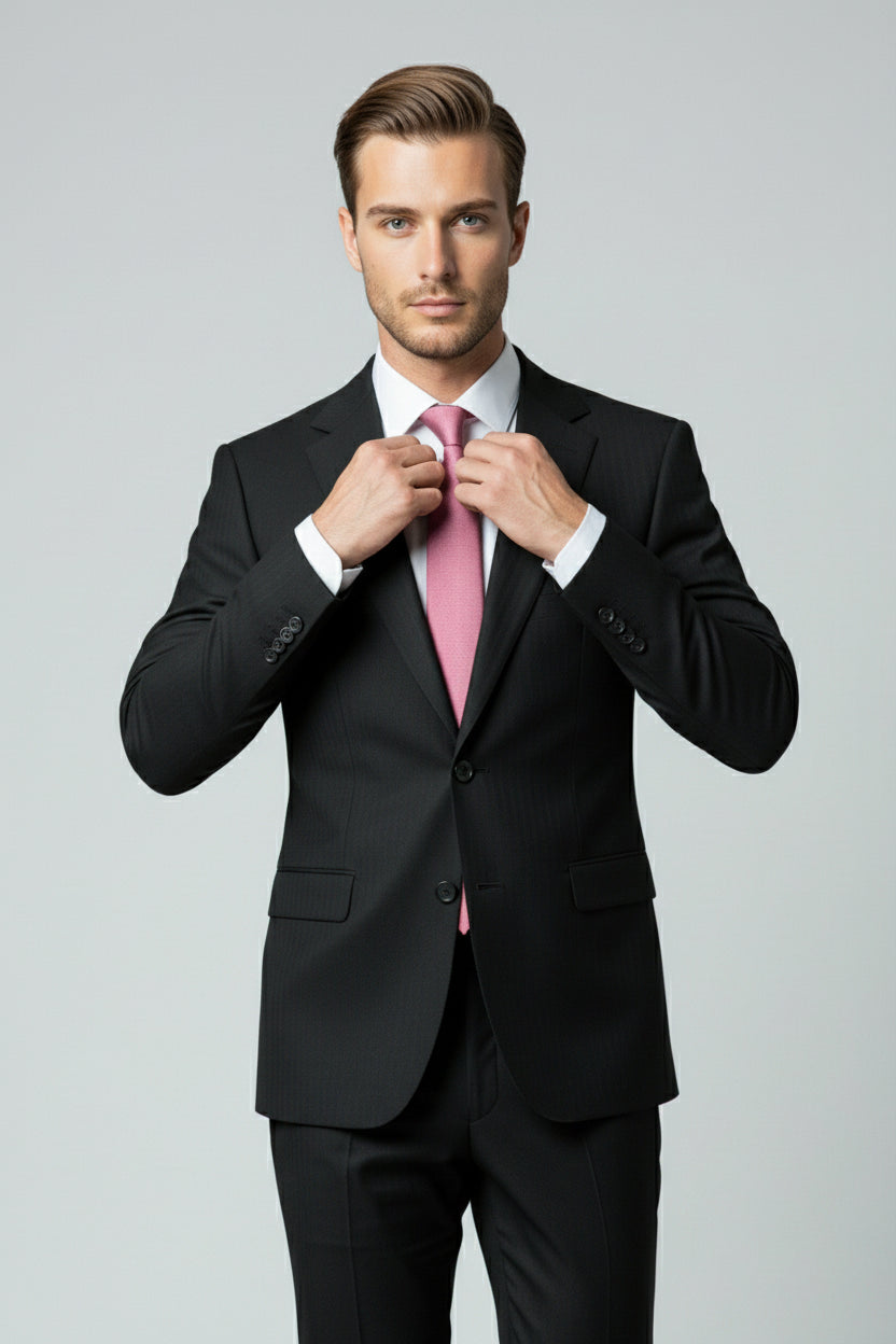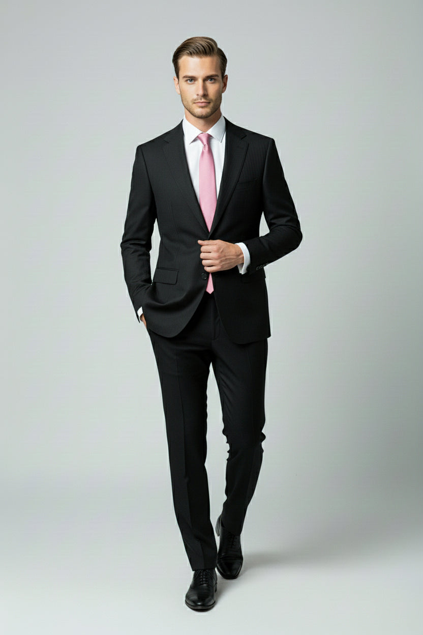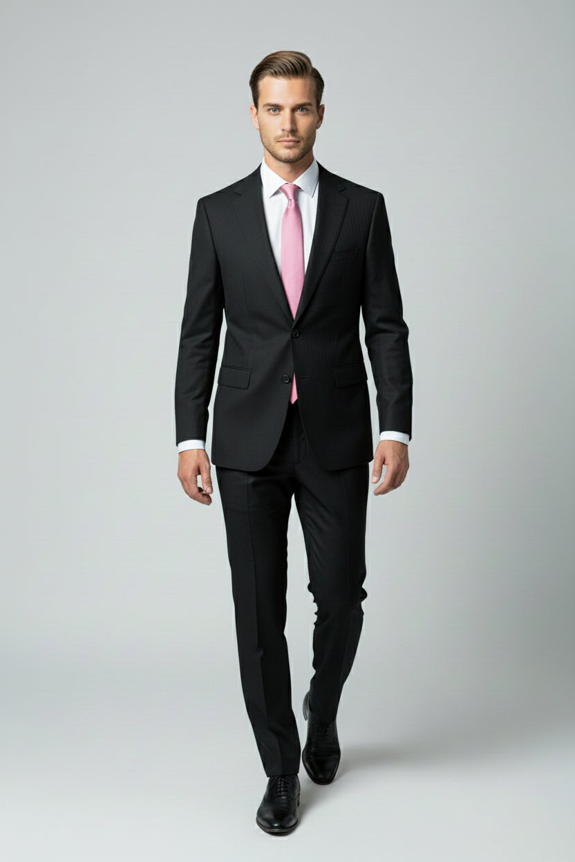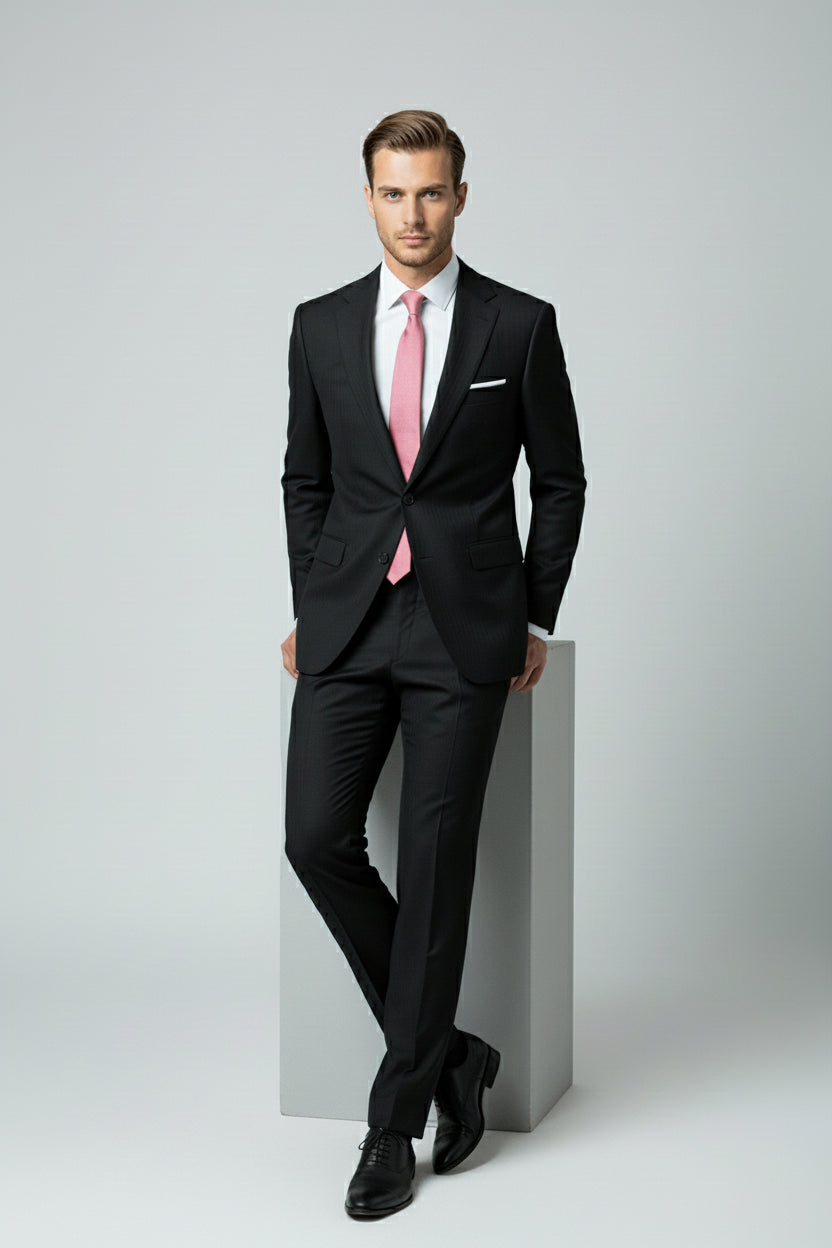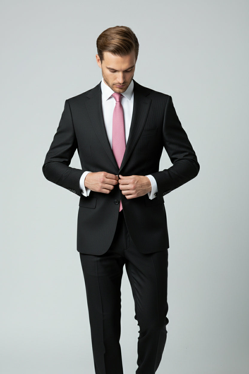 The Black Pinstripe Two-Piece Suit defines timeless power dressing with an edge of modern refinement. Tailored in a deep jet-black tone with fine vertical pinstripes, this suit enhances the body’s natural lines while exuding quiet sophistication and authority.