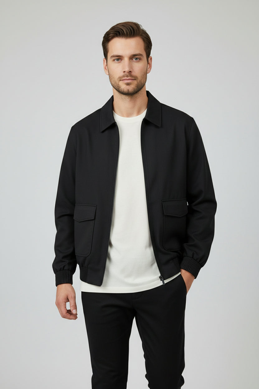 This Black Zip-Up Safari Suit delivers a sharp, modern take on relaxed tailoring. Designed with a clean safari-style jacket, it features a structured yet effortless silhouette that feels confident and contemporary. The straight collar and front zip closure create a sleek alternative to traditional buttoned tailoring, giving the suit a bold, modern edge. Tailored trousers complete the look with a streamlined profile, making it versatile for both day-to-night wear. Crafted from premium fabric, this suit is ideal for evening settings, smart casual occasions, and modern urban styling.