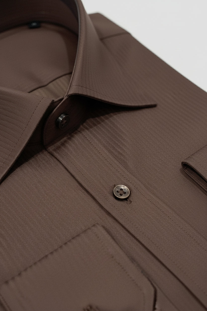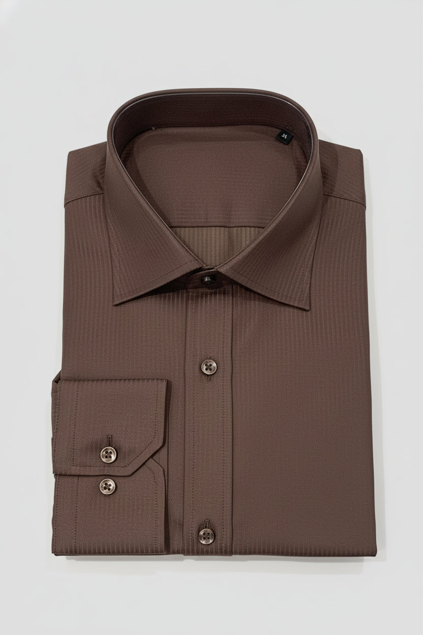 The Brown Striped Formal Shirt blends timeless elegance with subtle modern detailing — designed for gentlemen who value sophistication with a refined touch. The shirt features sleek vertical stripes in rich shades of brown, creating a slimming effect and adding texture without overpowering the look.