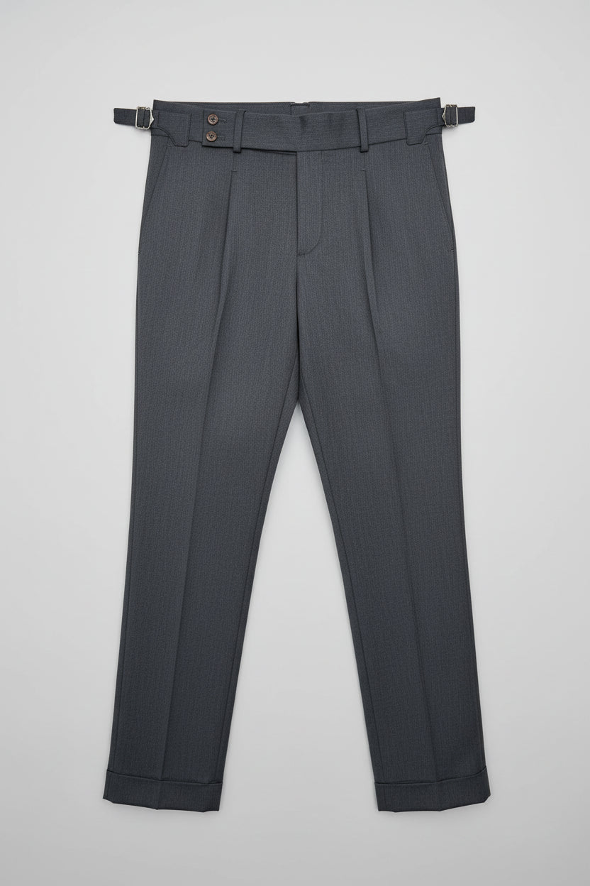 Made from a premium polyester-viscose blend, these pants deliver a smooth, structured drape with natural stretch and breathability — ideal for all-day wear. The side adjusters provide a slightly adjustable fit, eliminating the need for a belt and maintaining a sleek, uninterrupted waistline.
