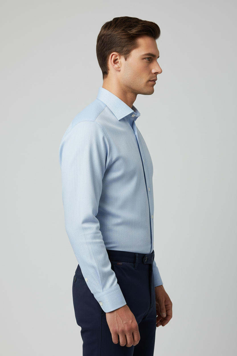 Embrace effortless sophistication with our Light Blue Slim Fit Dress Shirt, designed for the modern gentleman. Perfect for both formal occasions and refined casual settings, this shirt is a must-have in any wardrobe.