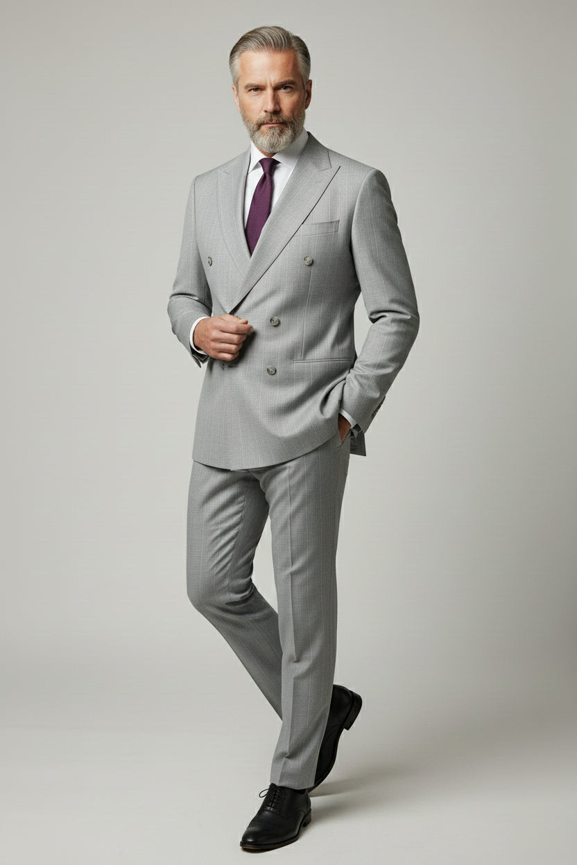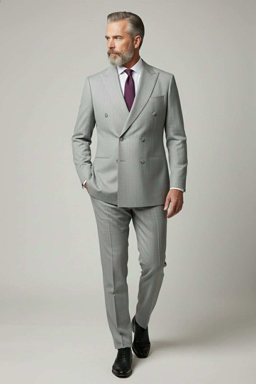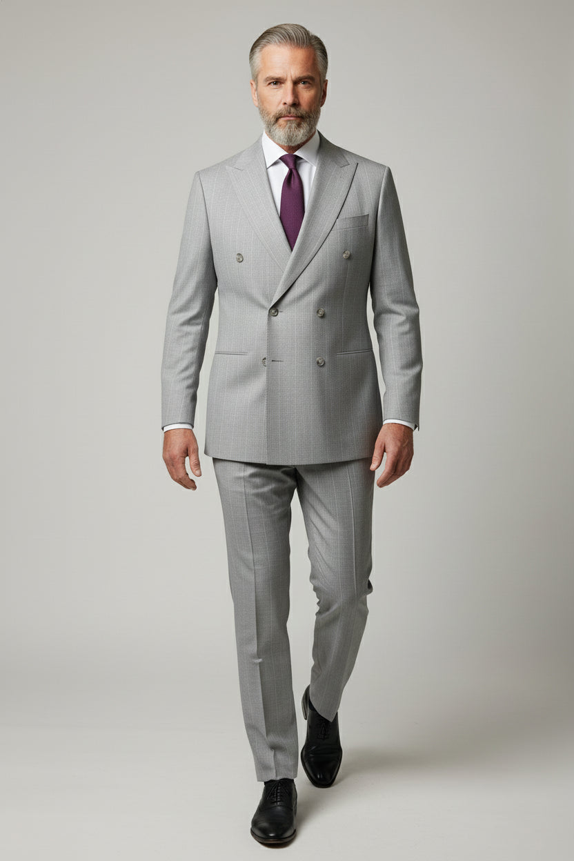 Light Grey Double-Breasted Pinstripe Suit