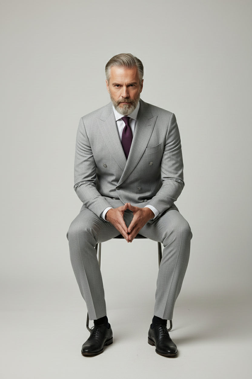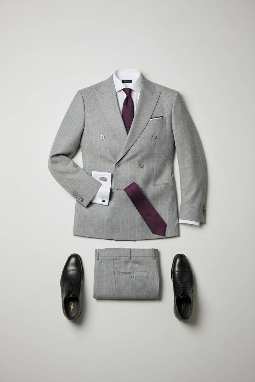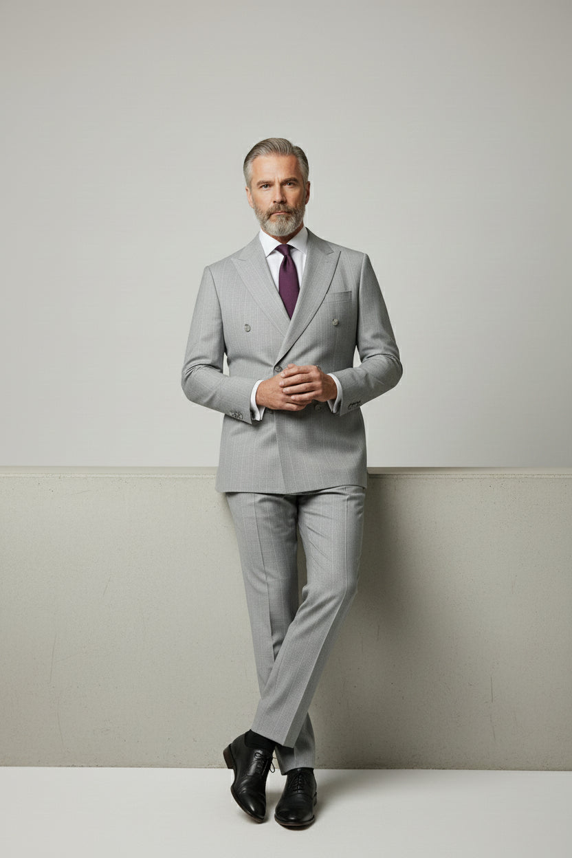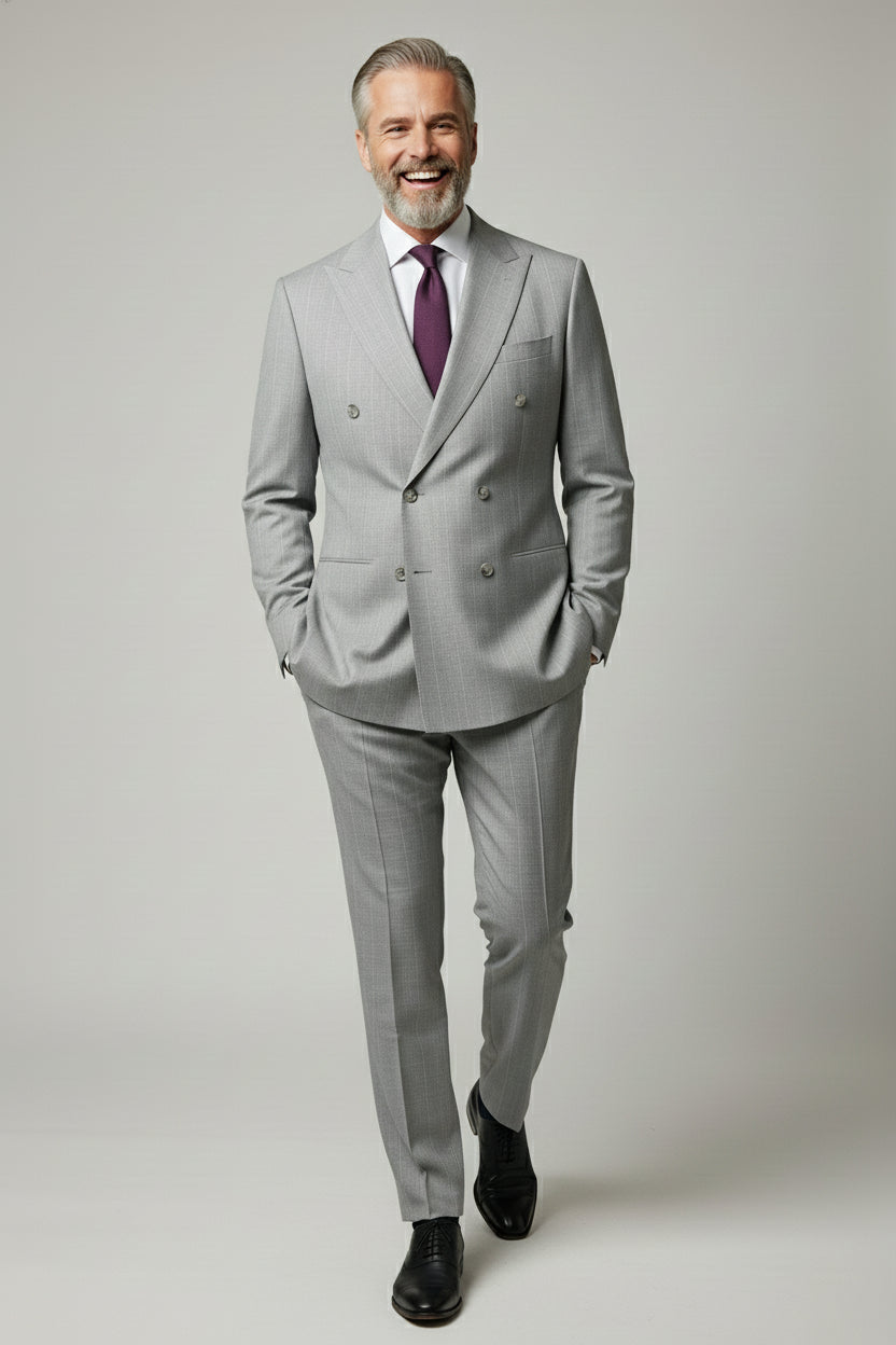 Light Grey Double-Breasted Pinstripe Suit