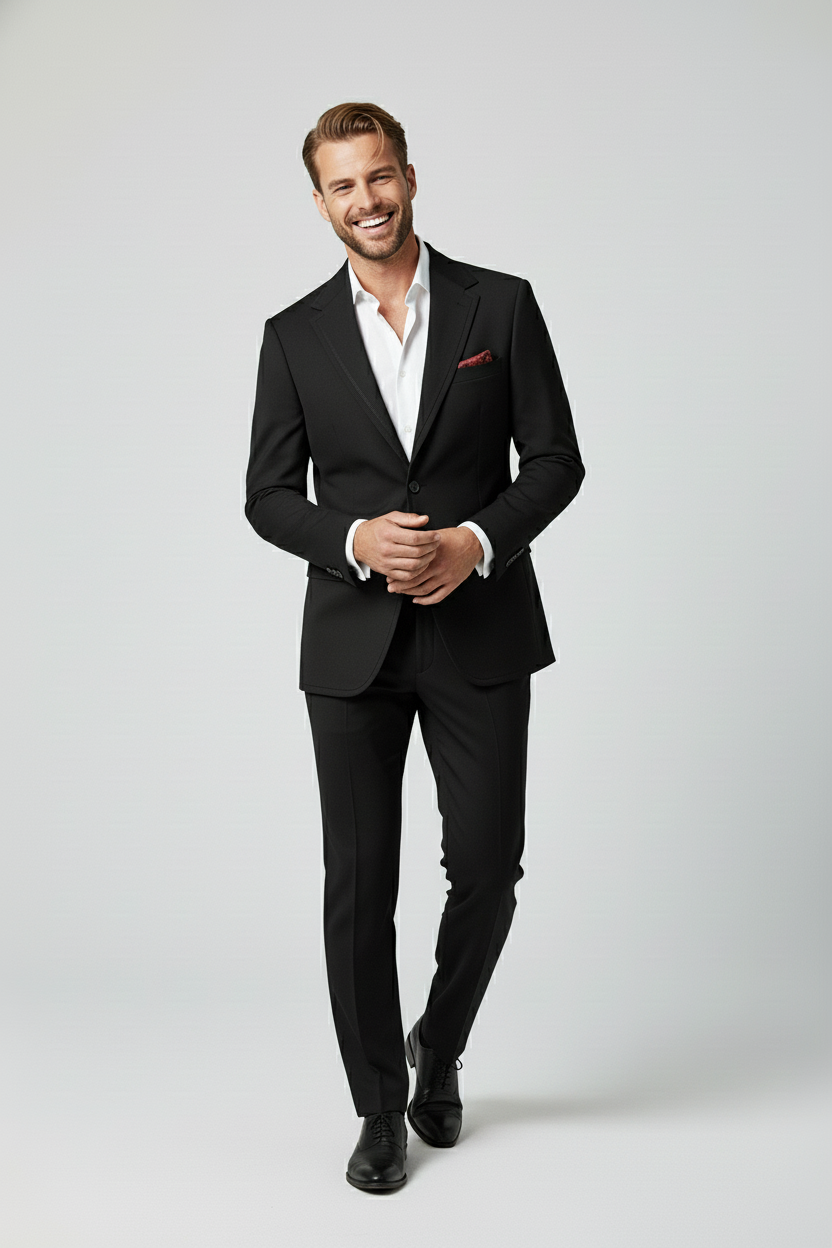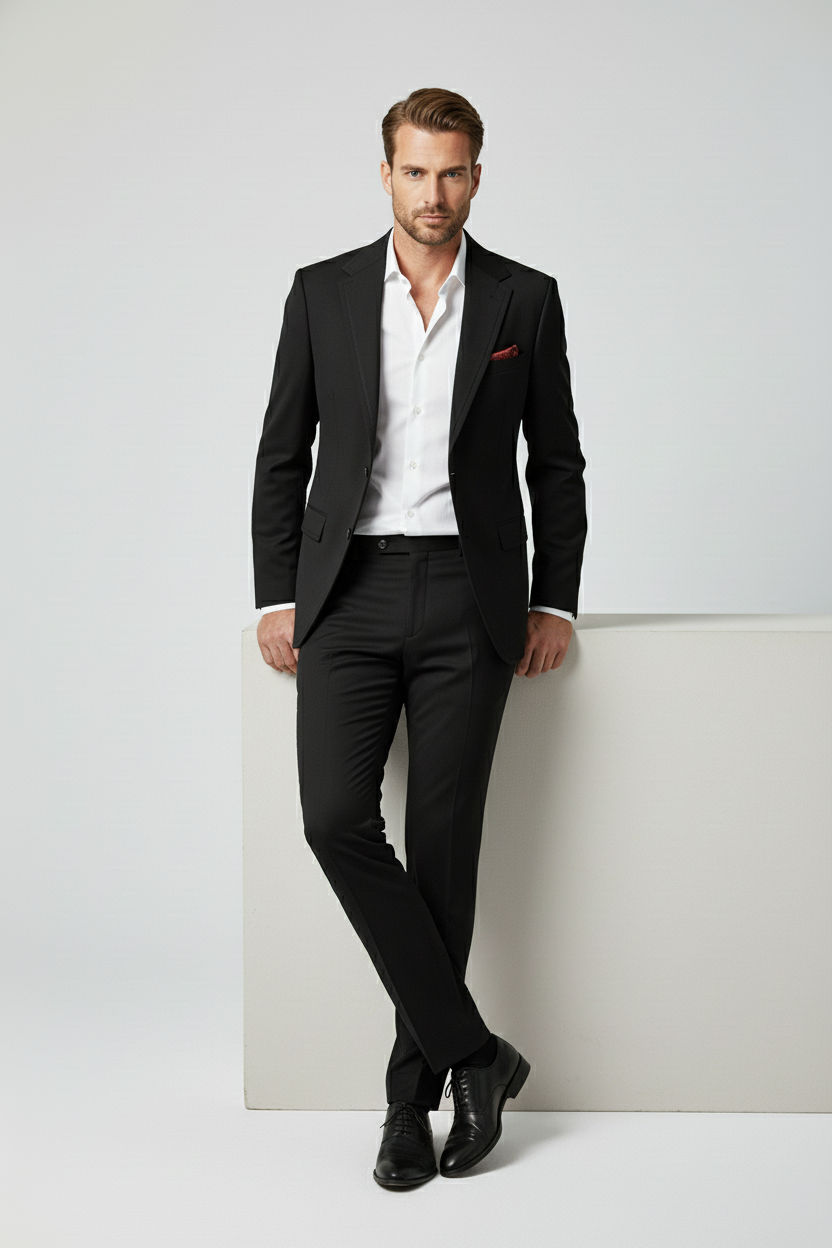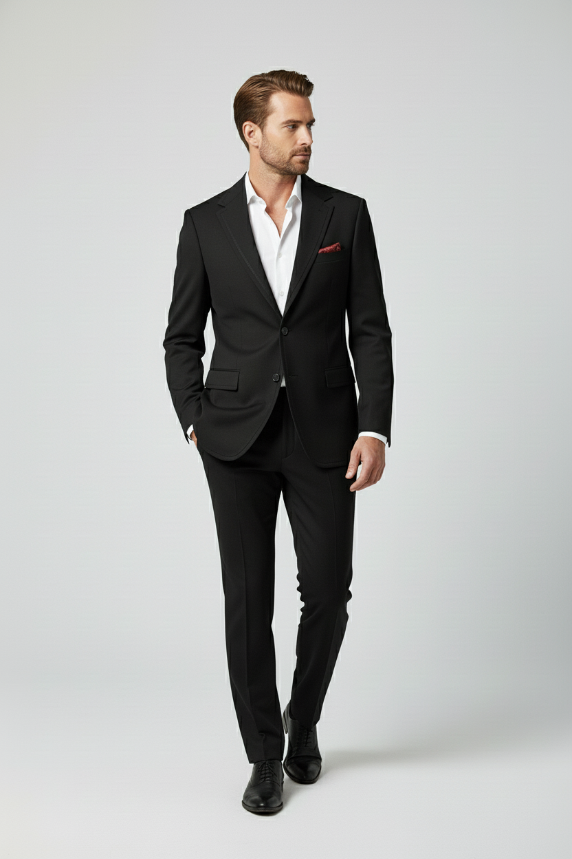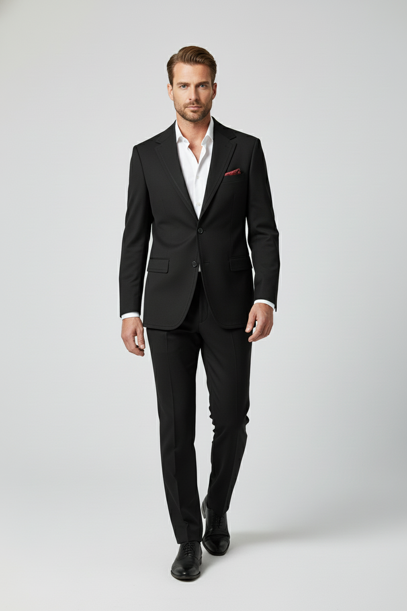 The Midnight Black Tailored Suit with Red Paisley Lining represents the pinnacle of craftsmanship and refined sophistication — designed for those who appreciate discreet luxury and superior detailing. This premium two-piece suit embodies precision tailoring and subtle elegance, combining contemporary structure with timeless character.