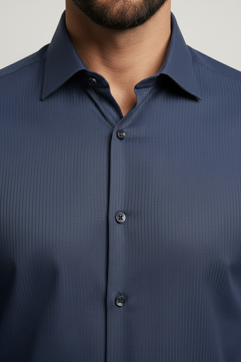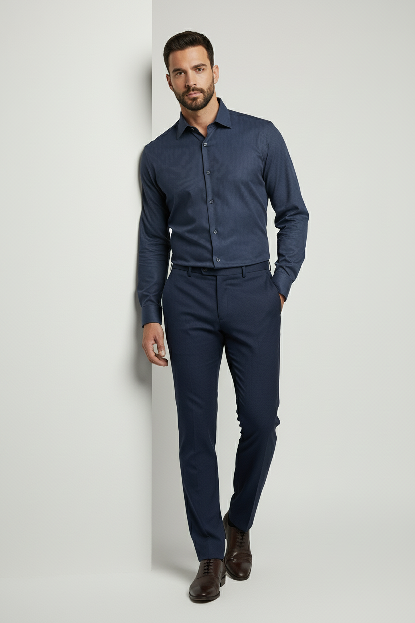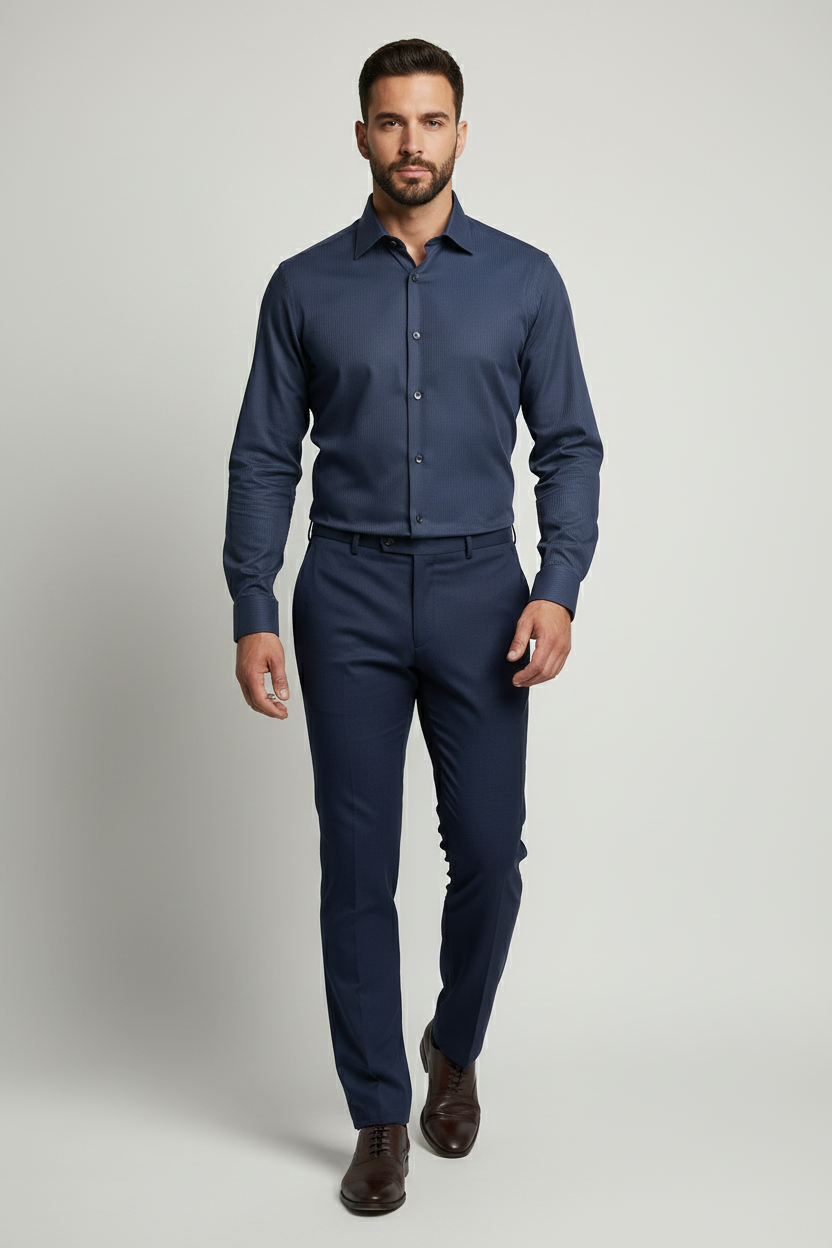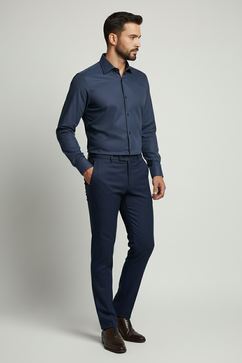 Embrace sophistication with our Navy Slim Fit Dress Shirt, designed for the modern gentleman. This versatile piece is perfect for both formal and semi-formal occasions.