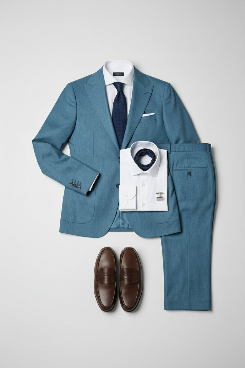 The Petrol Two-Piece Suit brings a bold yet refined edge to modern tailoring. Designed in a rich petrol blue hue — a deep, sophisticated blend of teal and navy — this suit perfectly bridges classic elegance with contemporary style. Its clean lines and minimal design make it a versatile choice for both formal and smart-casual settings.