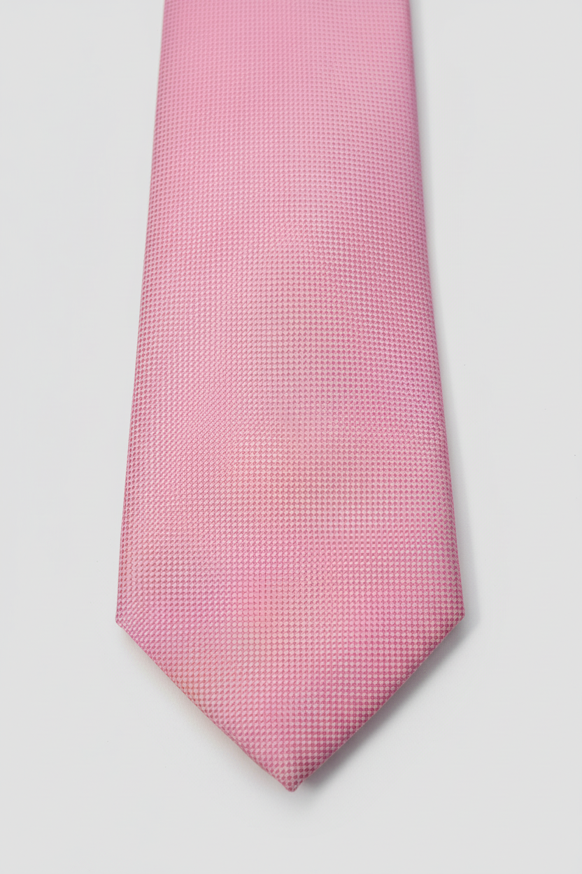 Elevate your ensemble with this exquisite pink textured silk tie. A perfect accessory for formal events and stylish gatherings, it adds a touch of sophistication.