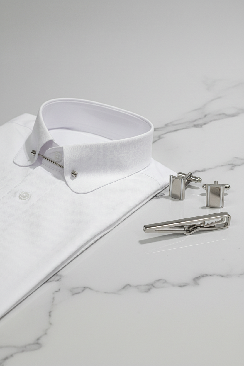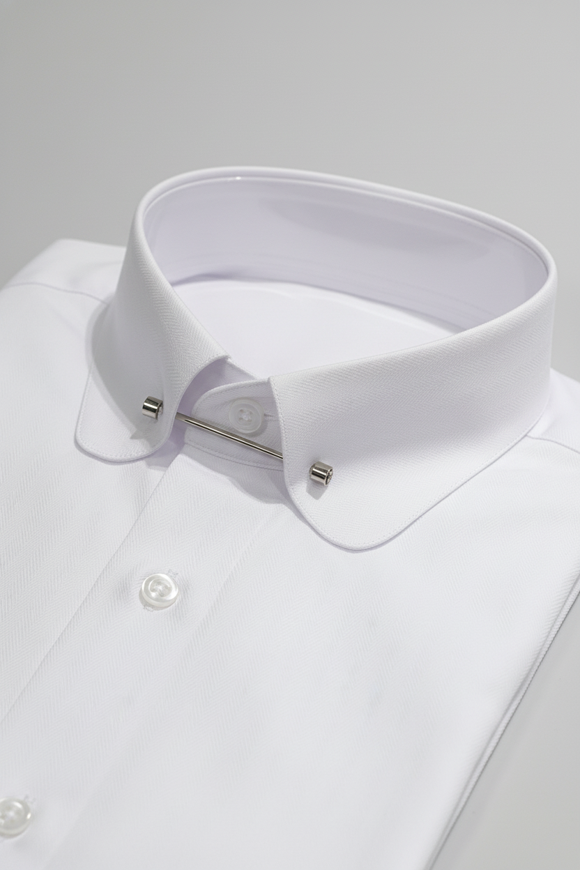 Designed with a sharp point collar and an elegant metal collar bar, it adds a distinguished touch that defines the tie knot and enhances the overall look. Ideal for weddings, galas, or business formality, this shirt embodies understated luxury and flawless tailoring.